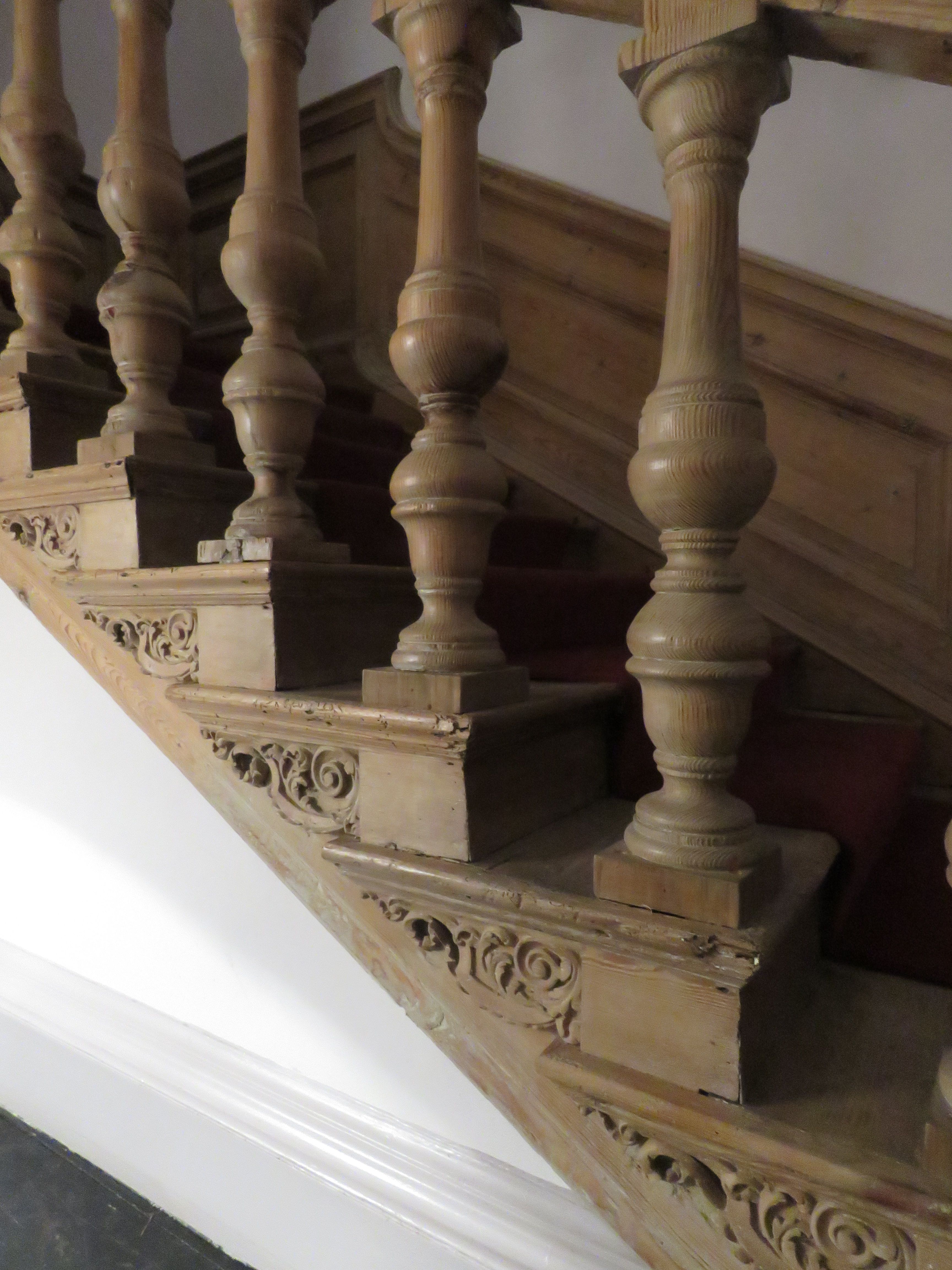 Carved soft-wood tread ends at Bellinter House, County Meath c.1750. Originally painted or stained. Photo:©CRAFTVALUE